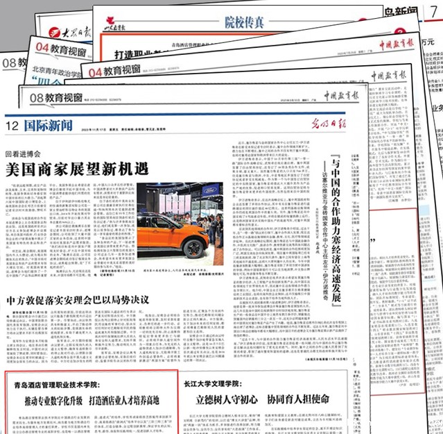 《光明日报》以学校推动专业数字化升级、打造酒店业人才培养高地为题,报道人才培养的经验做法。《中国教育报》4次专题报道,新华社、新华网、《中国旅游报》、《大众日报》、山东教育厅等省级以上媒体和平台报道120余次。获评“山东最佳品牌影响力高校”“山东最具影响力教育政务融媒体”“山东教育发布APP教育号综合实力二十强”“全国职业院校官微百强”等称号。