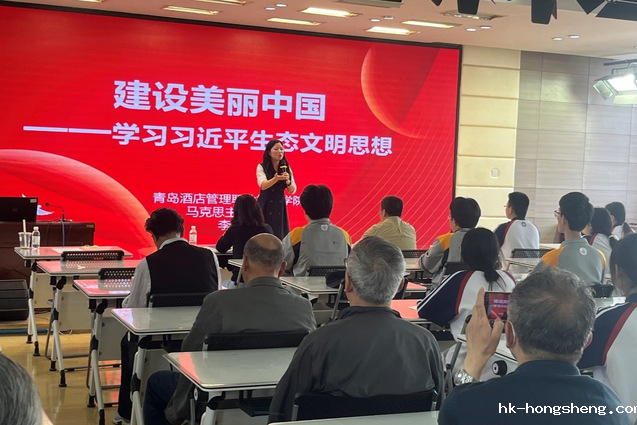 在青岛烹饪职业学校开展“建设美丽中国——学习习近平生态文明思想”微党课,马克思主义学院党支部书记、副院长李瑶围绕“生态兴则文明兴、从现代化变迁看生态文明、绿水青山就是金山银山”三个方面,与现场居民及师生展开交流,帮助大家进一步深化对习近平生态文明思想的理解和把握。