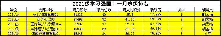 为培养同学们集体主义精神,促进大家养成良好的行为习惯,学院开展“流动红旗”评比活动,现公示十一月流动红旗获得班级名单分数排名,希望各班同学继续发扬优点,改正不足,提高自我管理、自我教育的意识,推动学院良好发展。
