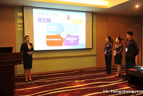 比赛现场本网讯 4月19日-20日,全省职业院校技能大赛高职组现代酒店服务技能大赛在旅游与酒店管理学院实训中心多功能厅举行阐述方案阶段比赛,各参赛队利用PPT手段,从客人分析、方案主题、方案概述、特色与优势等方面进行了详尽阐释。各参赛队方案表述语言流畅、思路清晰、特色鲜明,展示了扎实的专业技能。 |