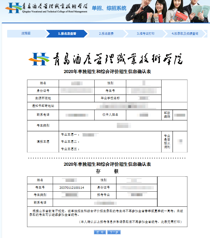 2. 考生查看报名信息(《考生信息确认表》无需打印),如图所示: